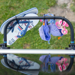 Pour faire sécher votre combinaison, utilisez l'étendoir Godry. Avec ses ventouses, vous pouvez l'accrocher sur tout support comme votre voiture, caravane, van ou salle de bain. Grâce à ce support, faîtes sécher votre combinaison sur votre véhicule ou salle de bain, le support n'abîme pas votre combinaison comparée au cintre. En effet, il ne faut pas l'étendre sur un cintre car le poids de la combinaison tire sur les épaules et fragilise le néoprène à ce niveau là. La nouveauté V2 ? Ses 4 crochets vous permettront de suspendre gants, cagoule, chaussons, mais également n'importe quel accessoire lors d'une utilisation camping (linge, ustensiles de cuisine...).