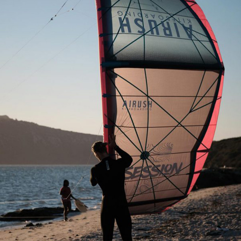 La Session possède des pare-chocs Airush sur tout le bord d'attaque de l'aile pour réduire l'usure et d'améliorée la durée de vie des surfaces rugueuses.