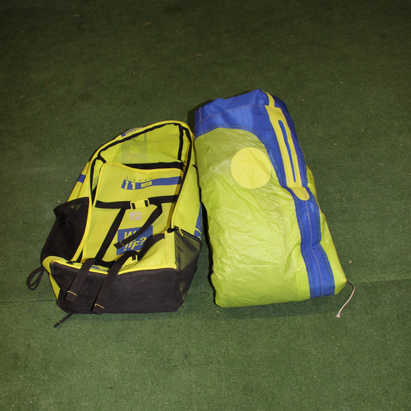 Aile FreeStyle de chez F One. Les kiteloops seront faciles à réaliser. La barre doit obligatoirement avoir 5 lignes. Dommage que cette aile a 2 patchs sur le bord d'attaque ainsi que quelques traces , le spi est en bon état , l'aile a peu navigué. Cela reste une bonne OCCAS !!!!!