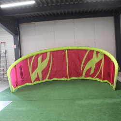 Aile FreeStyle de chez F One. Les kiteloops seront faciles à réaliser. La barre doit obligatoirement avoir 5 lignes. 4 mini patchs sur le bord d'attaque , pévoir de changer les tuyaux des one pumps , opération peu onéreuse et de nombreuses taches de mazout sur le spi , aile à petit prix !!!!!