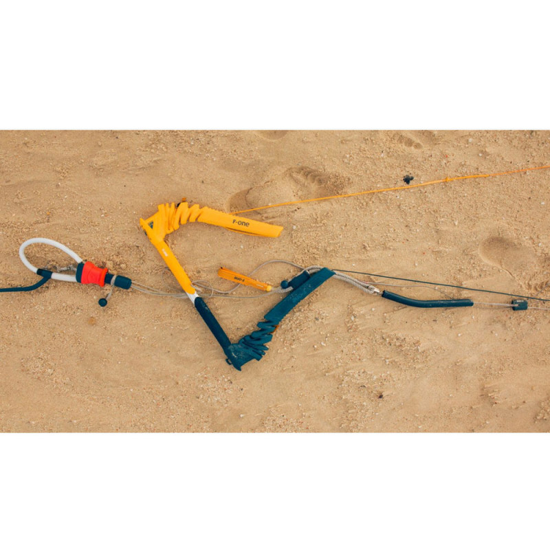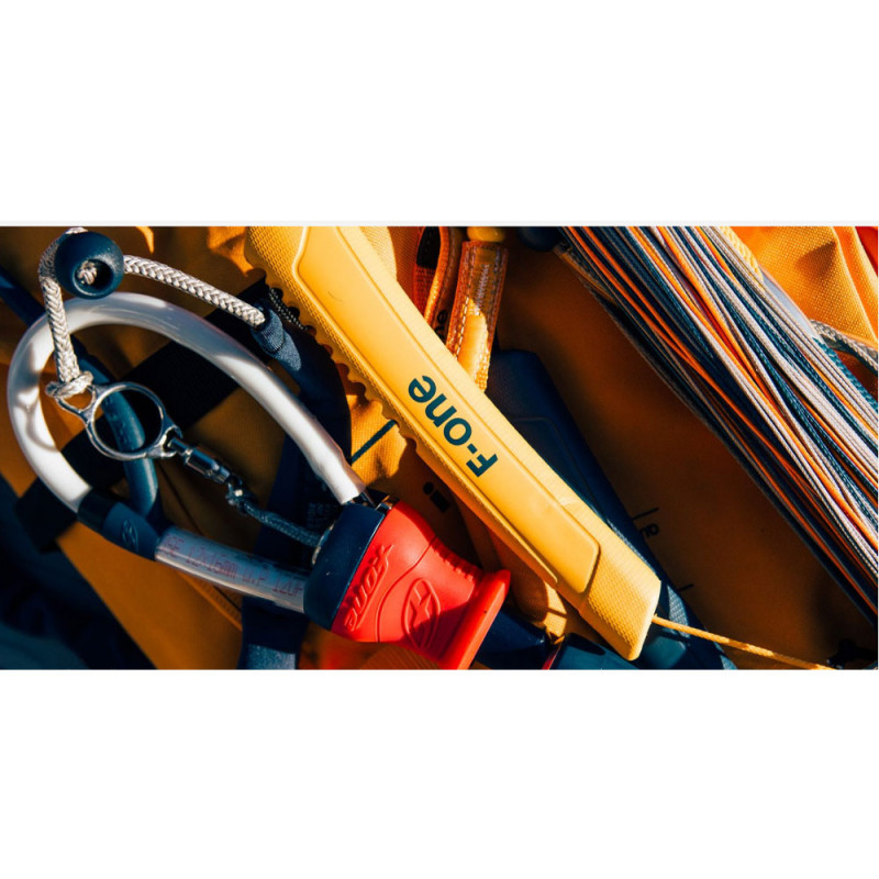 Barre livrée complète avec lignes de 24 mètres et équipée d'un leash d'aile 140 cm (Long) et d'une housse de protection.