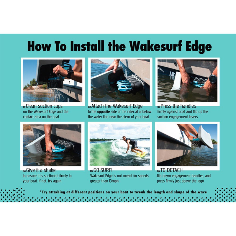 Le booster de vague Liquid Force Edge Line permet d'offrir à votre bateau la meilleure vague qui soit. Il est conçu pour s'adapter à des coques rainurées. 5 ventouses en caoutchouc agrippent fermement la coque et n'endommageront pas le gelcoat et ne laisseront pas de marques noires sur votre bateau. Facile à régler, il ne nécessite pas de velcro ni d'attaches de sécurité. Ce modèle se destine pour certains types de coques de bateaux qui seraient trop arrondis ou qui auraient une arête à l’endroit où positionner le Wake Shaper, l'autre modèle de Liquid Force. Ainsi, le Edge Line permettra une pratique du wakesurf idéale, peu importe le style de coque de votre bateau.