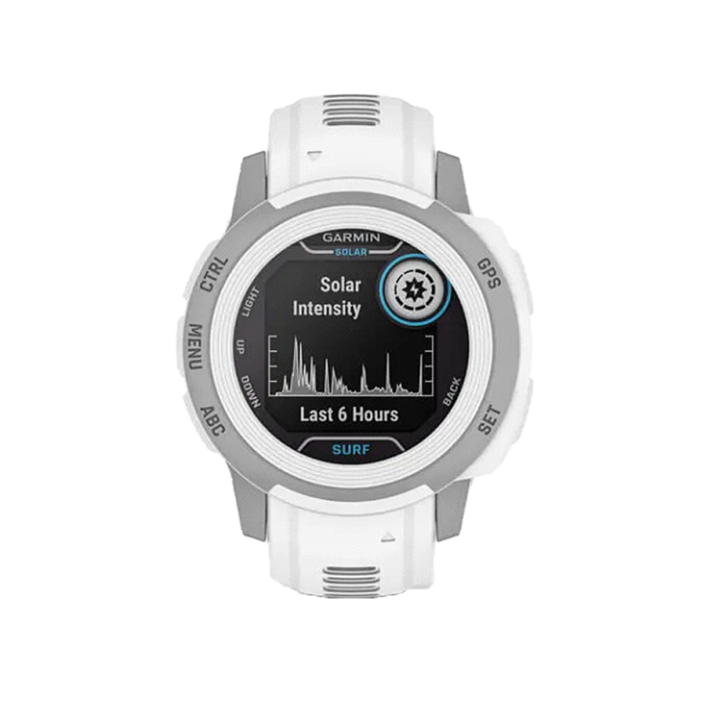 La montre Garmin Instinct 2S Solar Surf Edition permet de consulter les marées en temps réel ainsi que d'enregistrer le nombre de vagues surfées, la vitesse maximale atteinte et la distance parcourue. C’est une montre destinée aux surfers, mais pas seulement, elle est également adaptée à une utilisation quotidienne, plus classique.