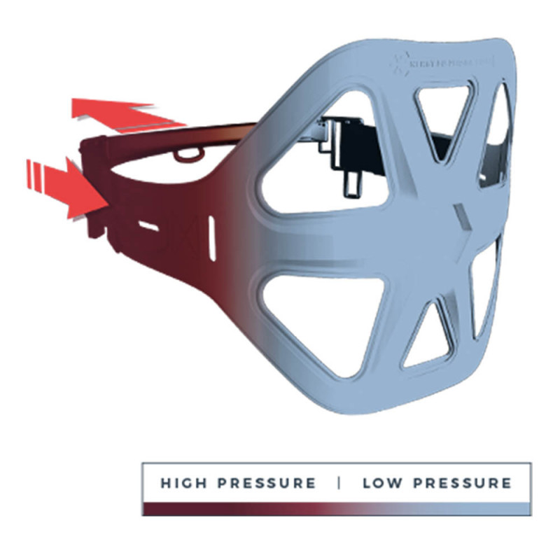 Optimiser la distribution des charges, tel a été le mot d'ordre de ce harnais unique qui bénéficie notamment de l'Energy Dispersion Frame (EDF), une structure hexagonale qui reçoit l'intégralité des forces transmises, évitant ainsi au corps de compenser par contractions musculaires.