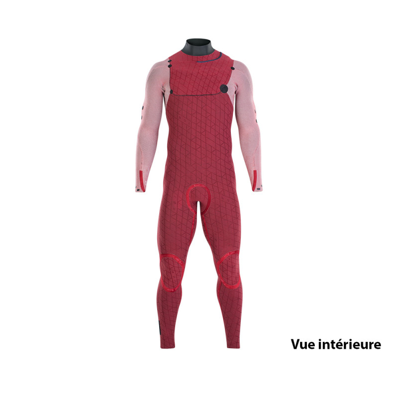 Ce sont les bandes rouges que l'on voit sur la photo intérieure et qui sont placées à des endroits où la combinaison peut s'abîmer facilement. Ces renforts augmentent la longévité de la combinaison sans réduire son stretch.