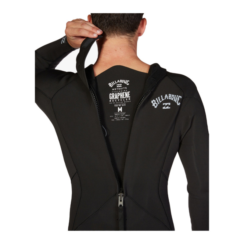 - La technologie Graphene (exclusive à Billabong pendant 1 an) piège la chaleur corporelle encore plus efficacement et pour plus longtemps avec une vitesse de séchage inégalable. La technologie Graphene permet d’avoir un gain de chaleur de 4 à 5°C par rapport à une combinaison classique.
