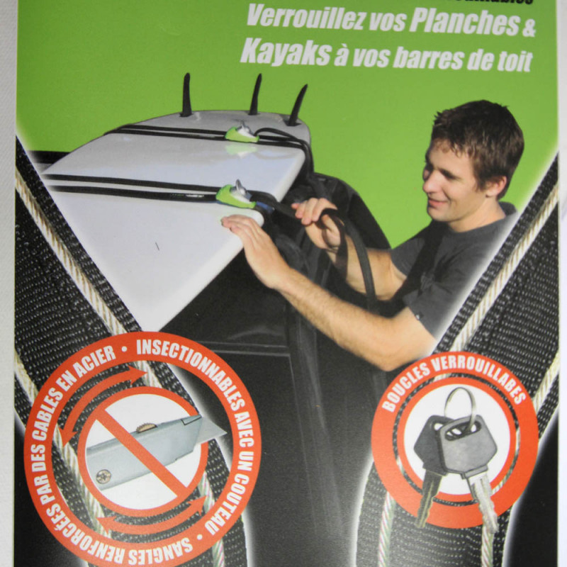 L’antivol parfait et efficace pour les SUP,kayak et surf sur les galeries ou posés sur le toit de la voiture.