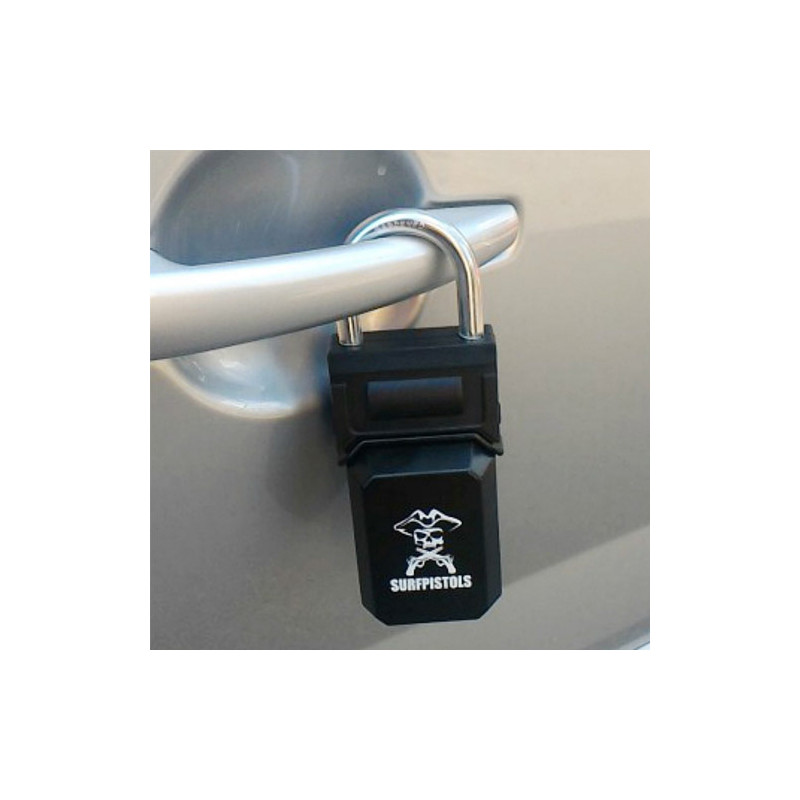 Le cadenas boîtier antivol Surf ¨Pistols est la lolution sécurisée pour mettre à l'abri vos clés de voiture ou objets de valeur avec son cadenas à 4 chiffres. La coque métallique : incassable et résistant aux intempéries. Il S'accroche facilement autour d'une poignée ou de n'importe quelle partie robuste (châssis de voiture, portail, poteau).