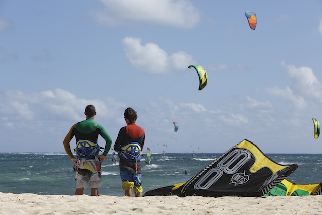 L'alizé est remonté d'un cran, voire de deux. 30 noeuds sur le plan d'eau, mais des vagues à Manawa et One Eye. Mitou, déconcertant de facilité, de radicalité et de fluidité sur le plan d'eau, tout comme Maxime Nocher en démo de kiteloop juste avant d'aller prendre l'avion.