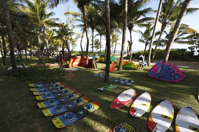 Le 11 h d'avion c'est fait, le transfert à l'hotel s'est bien passé merci, on ne donnera aucune précision sur le nombre d'étoiles pour ne pas vous hérisser le poil. Disons qu'il y a les chambres, le gazon, la plage et le spot. Ce sont d'excellentes conditions pour travailler....Raphaël, son équipe et une partie du team, dont Mitu, étaient là. Chacun a chopé une combi Manera et un harnais et on est partie au bouillon.