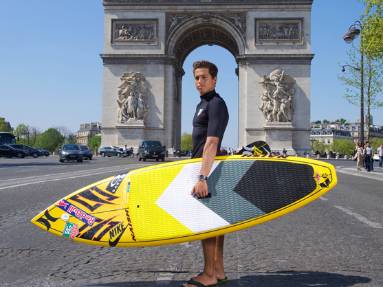 L'américain Kai Lenny, surfeur, windsurfeur, kitesurfeur, six fois Champion du Monde de Stand-Up Paddle sur les plus grosses vagues du monde, est à Paris. A 24 ans seulement, Kai surfe l'énorme et redoutable vague Jaws depuis déjà quelques années. Il est le seul à l'avoir surfé dans 4 disciplines différentes dans la même journée (surf tracté, SUP, windsurf et Kitesurf). #DontCrackUnderPressure Craquer sous la pression n'est jamais une option quand il se met à l'eau, voilà dixit le communiqué de lamarque avec laquelle Kaï vient de signer un nouveau partenariat.