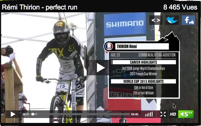 On aime le gros vélo, on ne s'en cache pas, on sait que vous êtes nombreux aussi à déchirer les singles avec des gros pneus, on projetait de vous balancer une bonne grosse vidéo pour vous rappeler que les jours sans vent, on peut aller prendre des G dans les collines et voilà pas que Rémi Thirion, un rider français du team Commençal se permet de faire claquer un podium en Coupe du Monde. Et pas n'importe quel podium, la marche du haut. Compte-tenu du niveau, c'est un peu comme si un français venait claquer une première place en freestyle sur le tour PKRA. Ce qui arrivera tôt ou tard, on en reste persuadé.