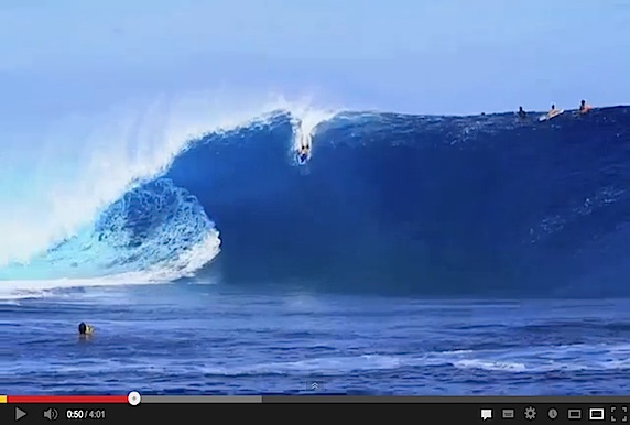 Genre de plan Biscottes chauffées à blanc. Ce n'est pas Teahupoo, au départ, on pourrait croire mais effectivement, même si c'est énorme, la lèvre semble moins épaisse, le bowl n'a pas la même forme. Reste que c'est juste heavy quand même et on peut s'étonner que le nom du spot circule déjà. S'ils veulent être tranquilles, c'est mal barré...