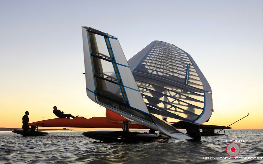 Le conditionnel est de mise, tant que tout ces chiffres ne seront pas passés à la moulinette du WSSRC mais compte-tenu de ce quii s'est joué dans les jours précédents, il est fort possible que ces chiffres deviennent une réalité gravée dans le marbre du WSSRC. On remarquera que quelques jours auparavant, alors que VSR 2 avait déjà dépassé les 59 noeuds, Alian Thébault, le skipper de l'Hydroptère, avait déclaré que le bateau, Sailrocket 2, était sans doute désormais capable d'aller entre 65 et 70 noeuds. Pour info, Sailrocket utilise un foil doté d'un profil super-cavitant (le type de profil utilisé sur les hélices de surface des bateaux à moteur très rapides par exemple), ce qu'aucun voilier n'a fait jusqu'à aujourd'hui. Ce n'est (hélas) pas le seul paramètre de sa réussite.