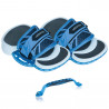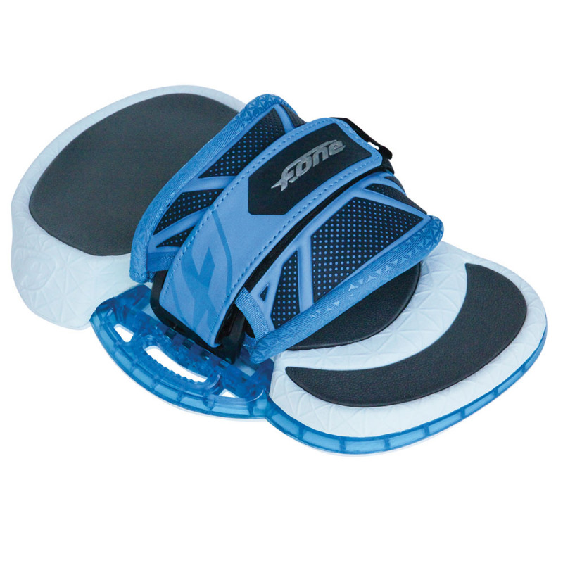 Le strap est ajustable à la taille et à la forme du pied, ce qui le rend plus confort grâce aux couches de mousse EVA de différentes densités et à son revêtement en néoprène combinés avec un socle en plastique injecté.