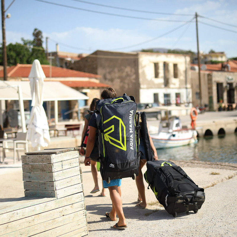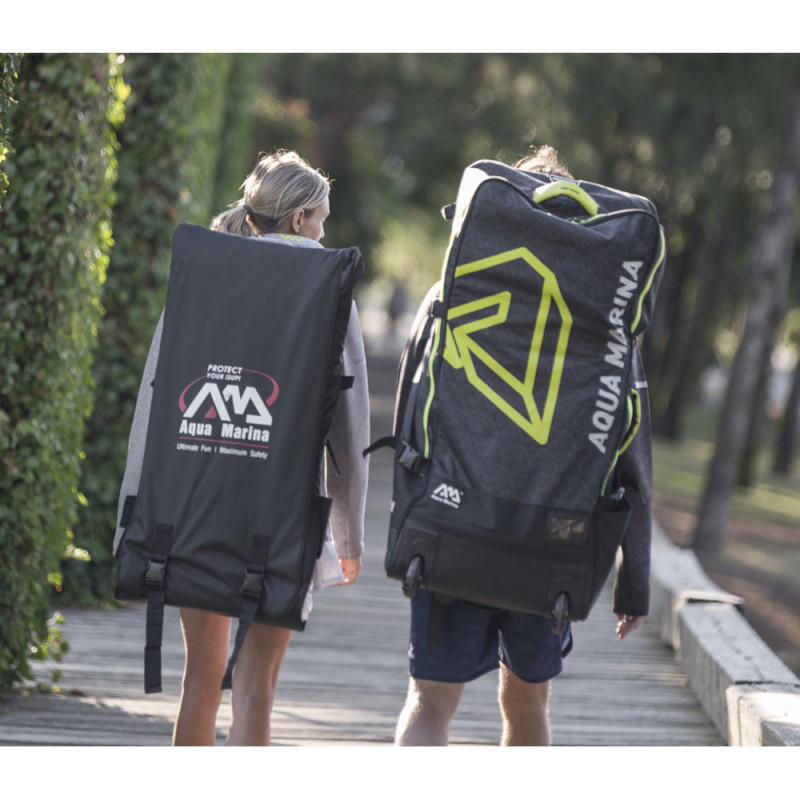 Le sac de transport Aqua Marina Premium Wheely est un modèle à roulettes qui permet de stocker et transporter un SUP avec son équipement complet ou bien encore un kayak et ses équipements.