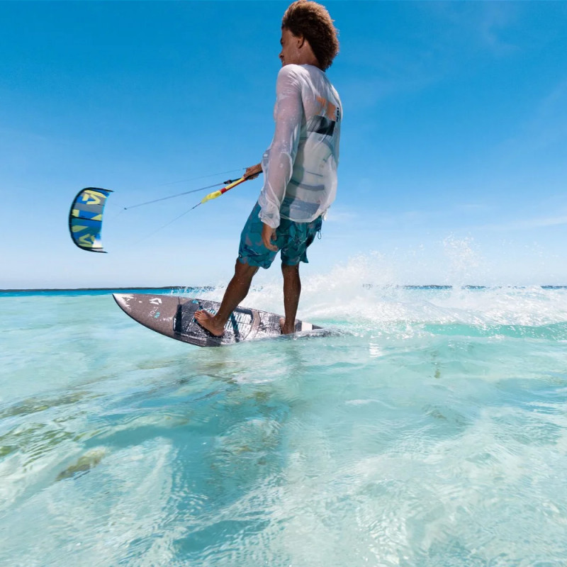Sur l'eau, cette planche se distingue par sa ligne de rocker rapide, idéale pour les départs par vent léger et pour une grande réactivité et vitesse sur les vagues. Sa conception de rail permet d'exécuter des snaps verticaux serrés tout en offrant une excellente adhérence lors des bottom turns plus larges. Elle est particulièrement amusante à rider lorsque les conditions ne sont pas au top.